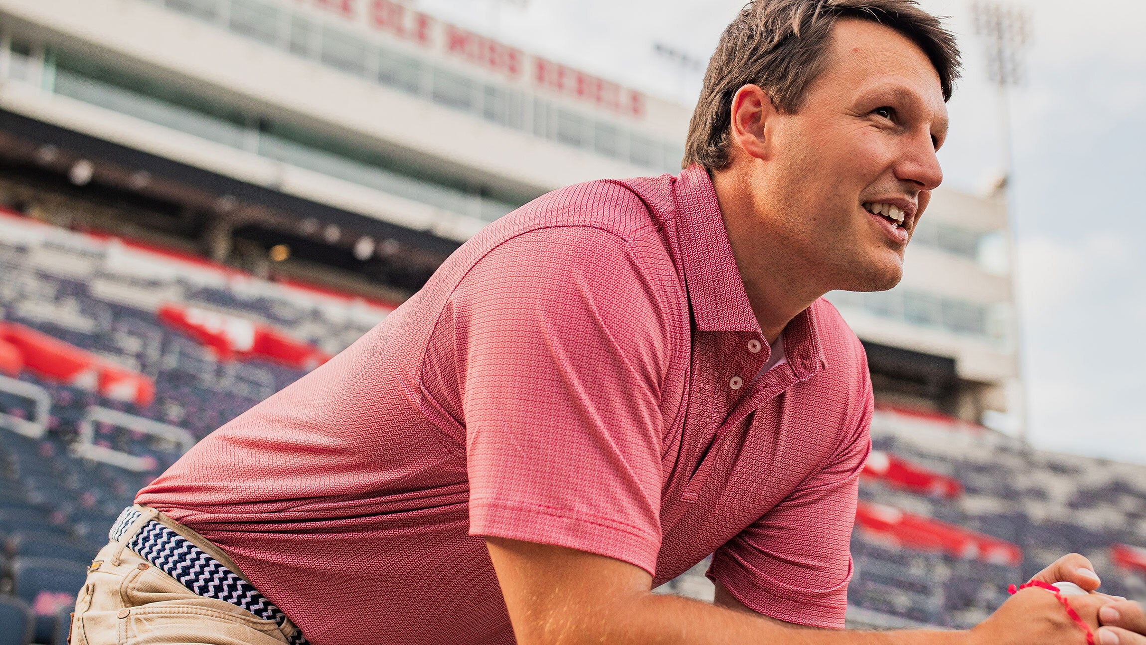 The Oktoberfest Performance Polo - Blue, Orange, Brown