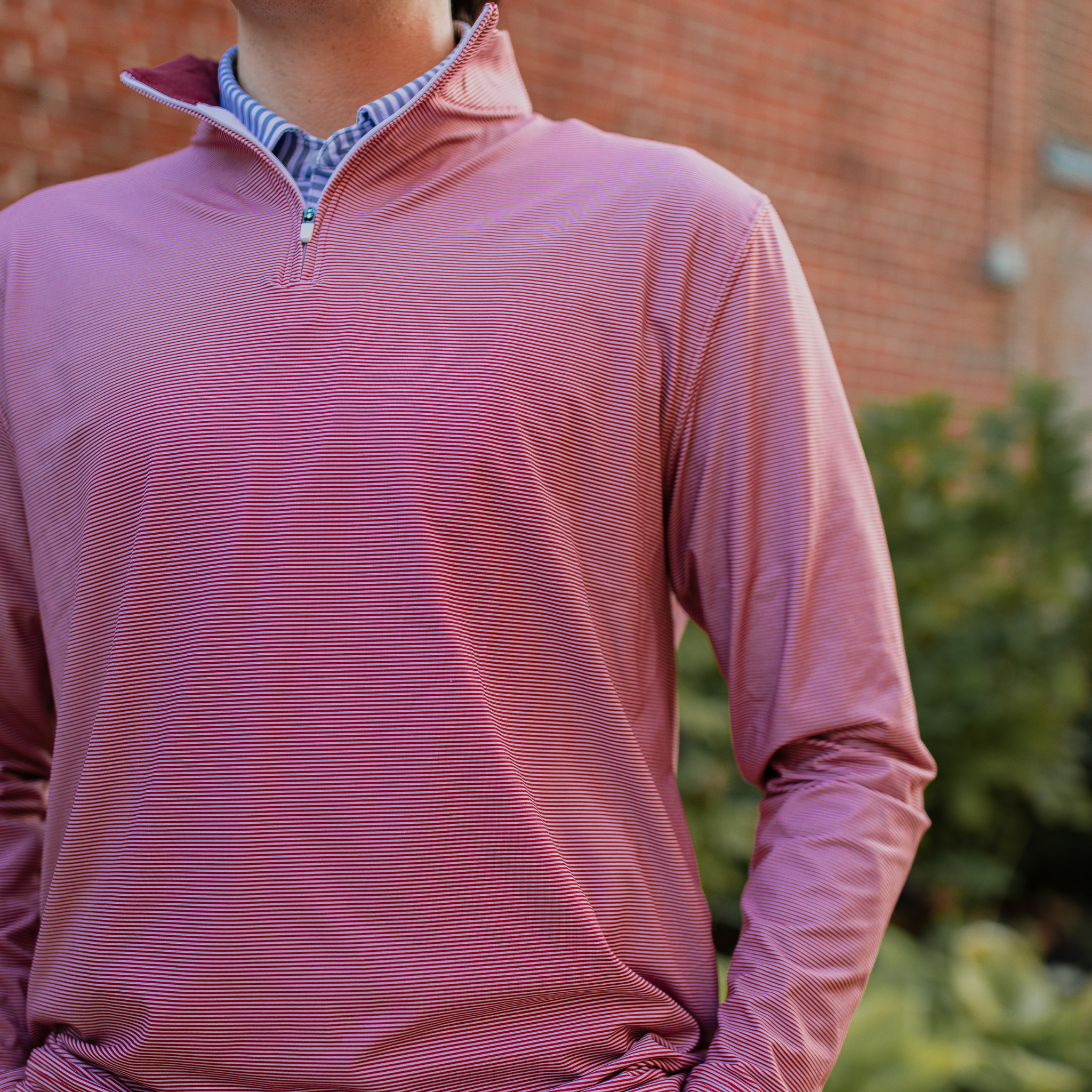 Introducing the officially-licensed Mississippi State Men's Performance Quarter Zip. The new quarter zip is perfect for your office days and evening nights. In stripes that stand out just enough to elevate your outfit. Made with a material that’s light enough and soft enough to keep you going all day long in an all day comfort.