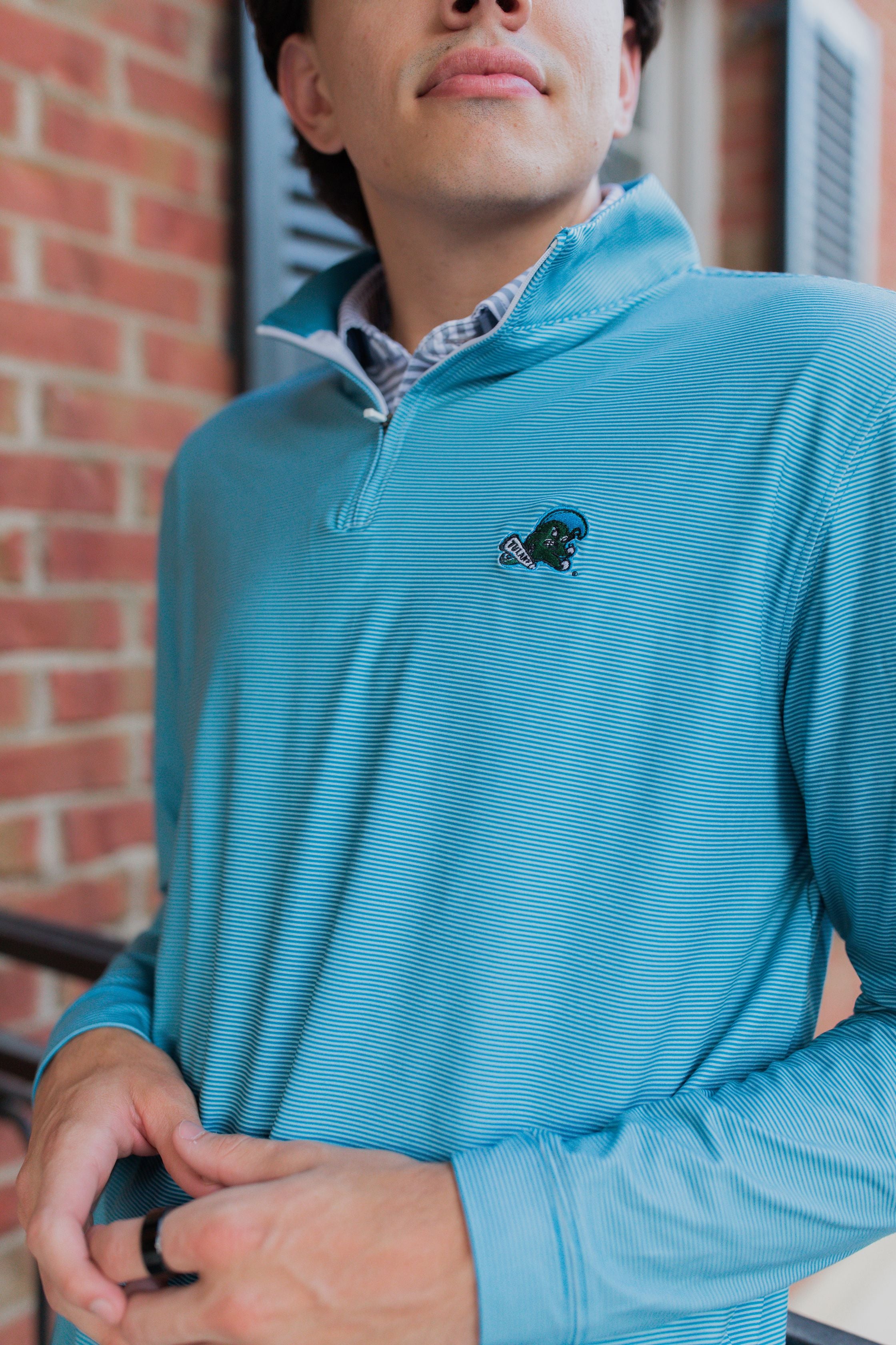 Introducing the officially-licensed Tulane Men's Performance Quarter Zip. The new quarter zip is perfect for your office days and evening nights. In stripes that stand out just enough to elevate your outfit. Made with a material that’s light enough and soft enough to keep you going all day long in an all day comfort.