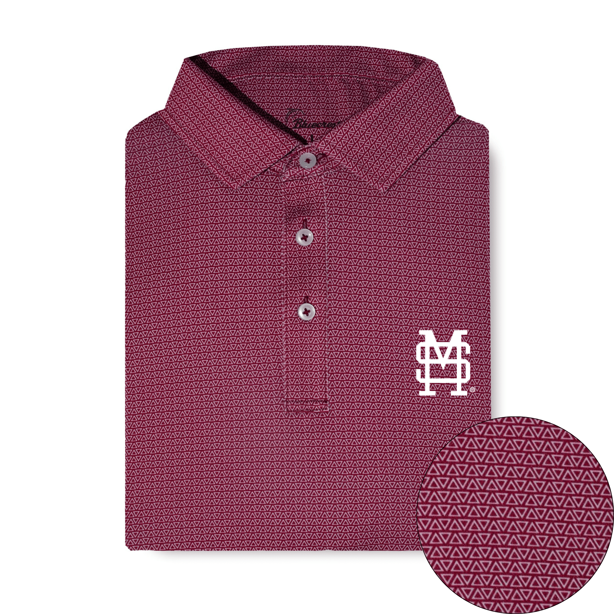 Make a statement with the officially licensed Mississippi State Apex Print Performance Polo, designed for those who demand both style and performance. Featuring a subtle two-color pattern, this polo delivers a sharp, masculine look that’s perfect for any occasion—whether you're out for a weekend outing, at a sports event, or enjoying a casual day with friends.