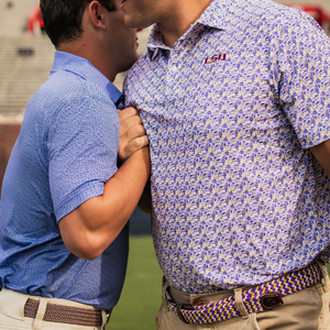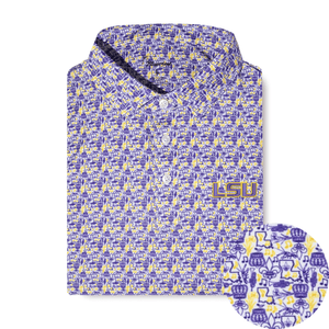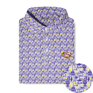 Laissez le bon temps rouler! Let the good times roll with the officially licensed LSU Boot Performance Polo, designed for those who demand both style and performance. Featuring a colorful, Louisiana-inspired pattern, this polo delivers a sharp, masculine look that’s perfect for any occasion—whether you're out for a weekend outing, at a sports event, or enjoying a casual day with friends.