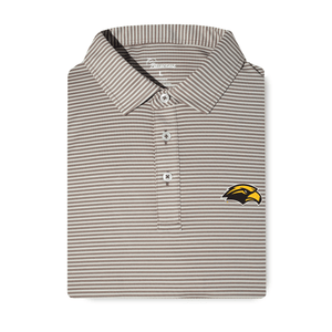 Introducing The Southern Miss Graduate Stripe Performance Polo, designed for those who demand both style and performance. Featuring five bold color stripes, this polo delivers a sharp, masculine look that’s perfect for any occasion—whether you're out for a weekend outing, heading to the game, or enjoying a casual day with friends.