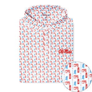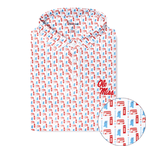 The Square is calling with the officially-licensed Ole Miss Oxford Performance Polo. This design pays homage to the traditions and charm of Oxford, Mississippi. Featuring the well known double decker buses and throwback red phone booths, this polo allows you to show off Oxford anywhere. Wear The Square with the Oxford Performance Polo.